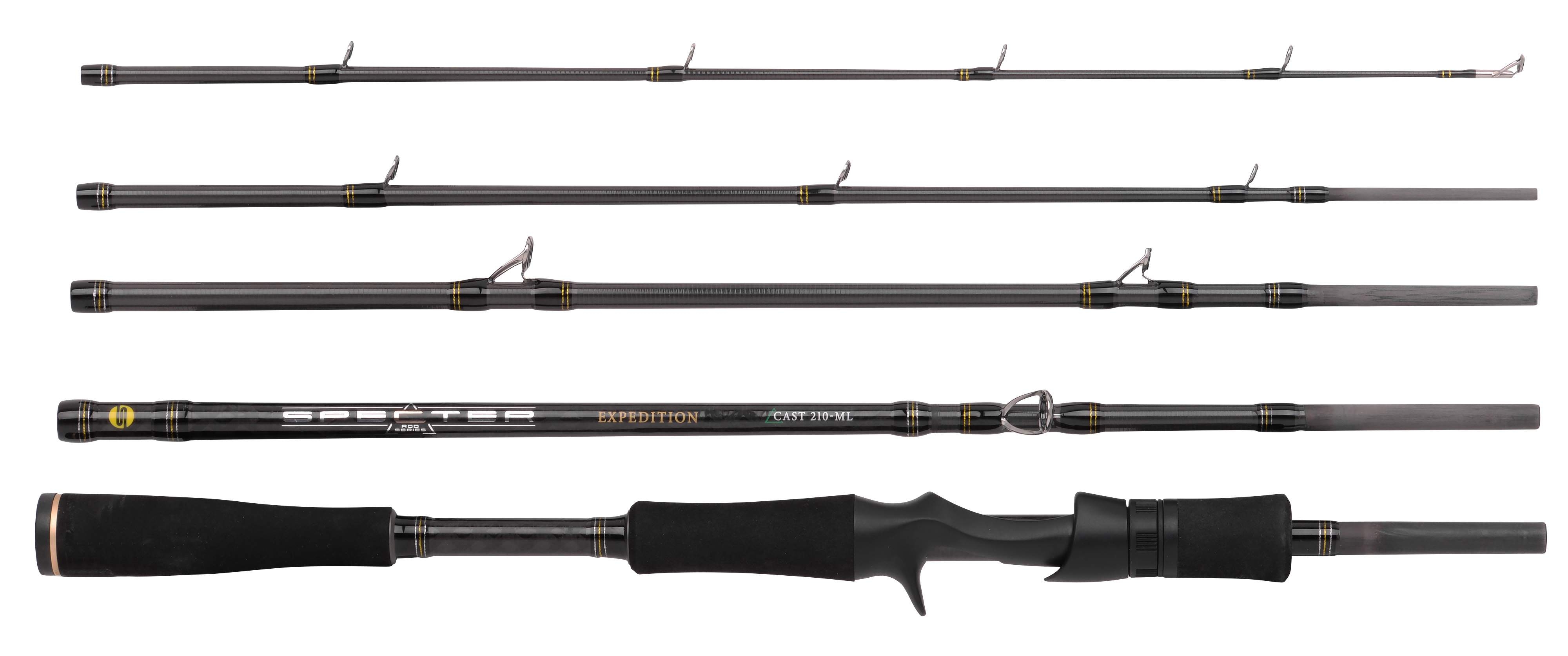 Super compact 5-section travel baitcasting rods for multipurpose lure fishing techniques. The “Medium-Light” rod is our all-round Expedition baitcasting rod for perch, zander and bass. The “Heavy” rod is developed for more powerful and heavier lure fishing techniques such as Pike and other fierce fighting predators.
