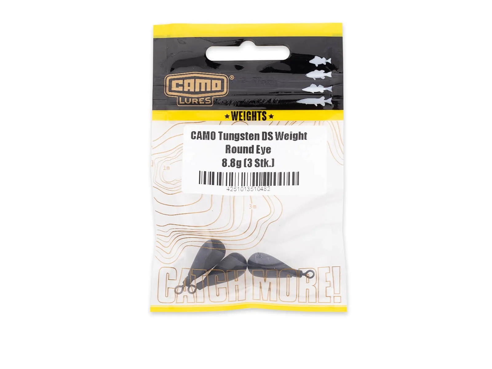 The CAMO Tungsten Drop Shot Weight Round Eye sont des plombs en forme de goutte avec un œillet rond. Ils sont parfaits pour le montage Free Rig, Jika Rig et Drop Shot Rig. Les CAMO Tungsten Drop Shot Weight Round Eye sont environ 50 % plus petits que des plombs comparables en plomb traditionnel. Le matériau extrêmement dur (98 % tungstène) permet de ressentir avec une précision maximale la structure du fond. Une fois que vous avez ressenti la différence du tungstène, vous ne pêcherez plus jamais avec autre chose ! Nous avons choisi une finition noir mat afin de garder l’attention du poisson concentrée au maximum sur le leurre souple. Avec des plombs drop shot argentés et brillants, les carnassiers attaquent très souvent le lest lui-même, ce qui provoque de nombreuses « fausses touches ».