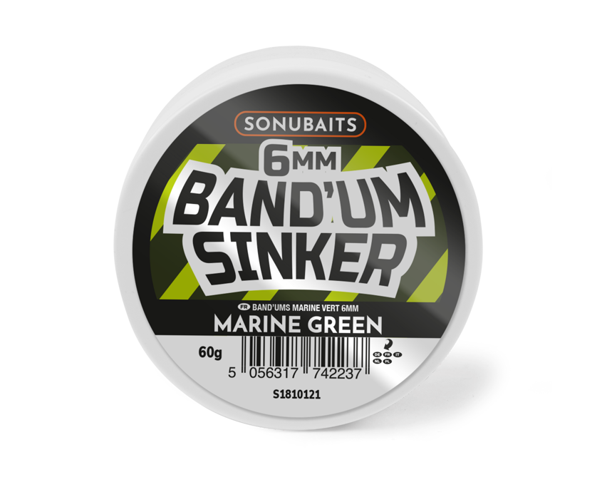 • Chaque barquette de Band'um Sinkers contient un mélange de trois coloris différents. Pour compléter nos amorces, pellets, et attractants liquides, les Band'um Sinkers Marine Green contiennent des appâts verts foncés, verts fluo et bicolores. Disponible en 6mm, 8mm et 10mm.