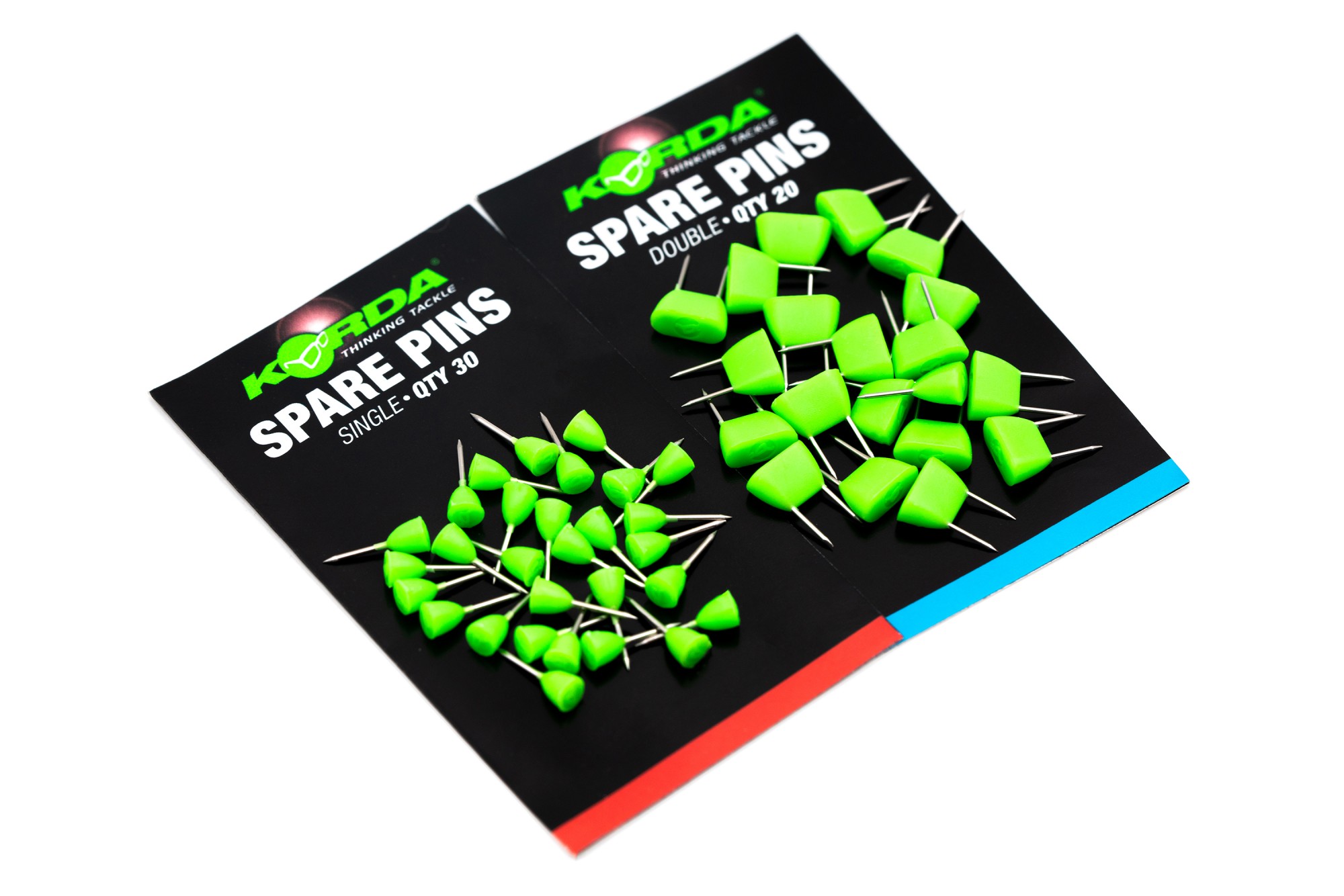 • Al onze RigSaves worden geleverd met bijbehorende pinnen die zijn ontworpen om uw voorgemonteerde rigs op hun plaats te houden. Mocht u ze verliezen of meer nodig hebben, dan kunt u ze apart aanschaffen. De enkele pinnen zijn bedoeld om uw haaklinkdraaikraal of lus stevig vast te zetten op de hoogdichtheidsschuimborden in de RigSaves. Soms wilt u uw rigs afmaken en ze op de juiste lengte knopen zodra u op de locatie aankomt. De dubbele pinnen zijn speciaal voor dit doel ontworpen en zijn handig als u langere haaklinks gebruikt die moeten worden samengevouwen om op de schuimborden te passen. De bovenkant van de pinnen is zo ontworpen dat ze zeer gemakkelijk te grijpen zijn. Elk pakket bevat 30 enkele pinnen of 20 dubbele pinnen.