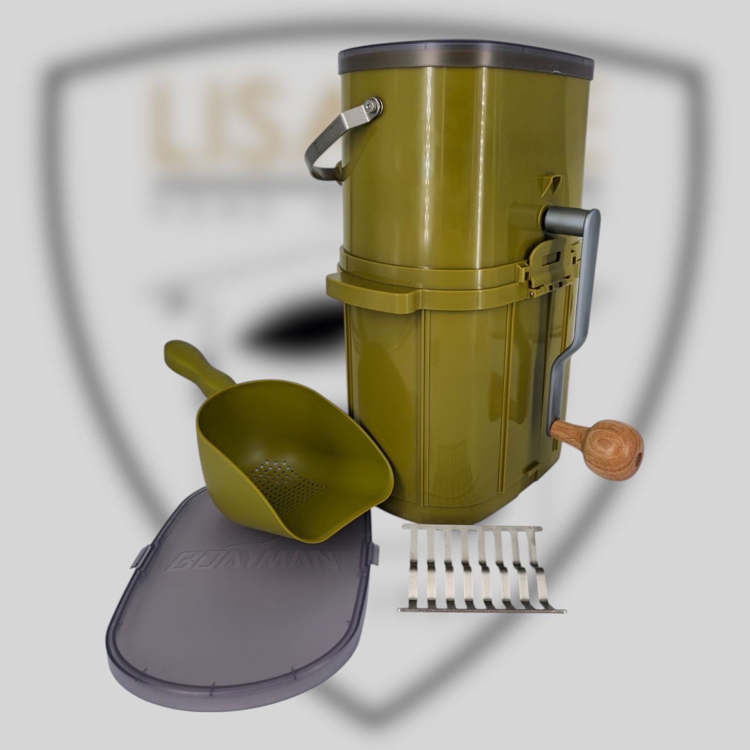 De Boilie Crusher Set is ontworpen voor vissers die hun aas perfect willen voorbereiden, ongeacht de omstandigheden. Dankzij de robuuste constructie, doordachte opbergmogelijkheden en het hoge gebruiksgemak is deze crusher een ideaal hulpmiddel voor het fijnmalen van boilies, pellets of andere aassoorten. De set bestaat uit een crusher met een inhoud van ± 1,2 liter, een emmer van ± 5 liter, een maatlepel van ± 0,6 liter, een stevig handvaten 2 deksels. De crusher is uitgerust met een krachtig intern bladmechanisme dat moeiteloos boilies verbrijzelt tot de gewenste textuur. Door het compacte ontwerp neemt de set weinig ruimte in beslag maar blijft ze uiterst functioneel. Met een totale hoogte van 257 mm en een diameter van 261 mm is hij makkelijk mee te nemen naar elke sessie. De hoogte met handvat bedraagt 190 mm, en de crusher zelf is 155 mm hoog. Alles past netjes in of op elkaar, zodat je nooit losse onderdelen verliest – ideaal voor karpervissers die efficiënt willen werken aan de waterkant.