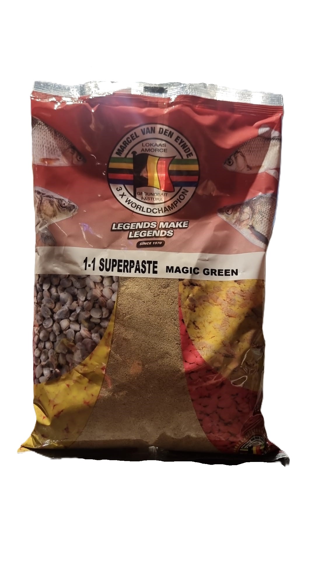 Ontdek Van Den Eynde Superpaste Magic Green: Innovatief en Effectief.Na uitgebreid advies van professionals uit verschillende Europese landen, presenteren we met trots onze Van Den Eynde Superpaste Magic Green. Dit verbeterde formaat paste is speciaal ontwikkeld om aan de vraag naar een robuustere aassoort te voldoen.Ideale Bereiding:Voor de beste resultaten, meng 0,9 deel water met 1 deel Superpaste. Na slechts 5 tot 10 minuten is het mengsel gereed om tot een perfecte bol gevormd te worden. Voor optimaal gebruik raden we aan de paste direct na het bereiden te gebruiken.Unieke Eigenschappen:Net als onze populaire Expenda Magic Green, onthult de Superpaste Magic Green zijn levendige groene kleur pas nadat het nat is gemaakt, wat zorgt voor een visueel aantrekkelijk effect onder water. Deze groene variant is speciaal ontwikkeld om een extra dimensie aan uw vistechniek toe te voegen.Buiten de standaard Superpaste, biedt de Magic Green versie een innovatieve twist die uw viservaring zal verrijken. Kies voor Van Den Eynde Superpaste Magic Green en ervaar de magie zelf!