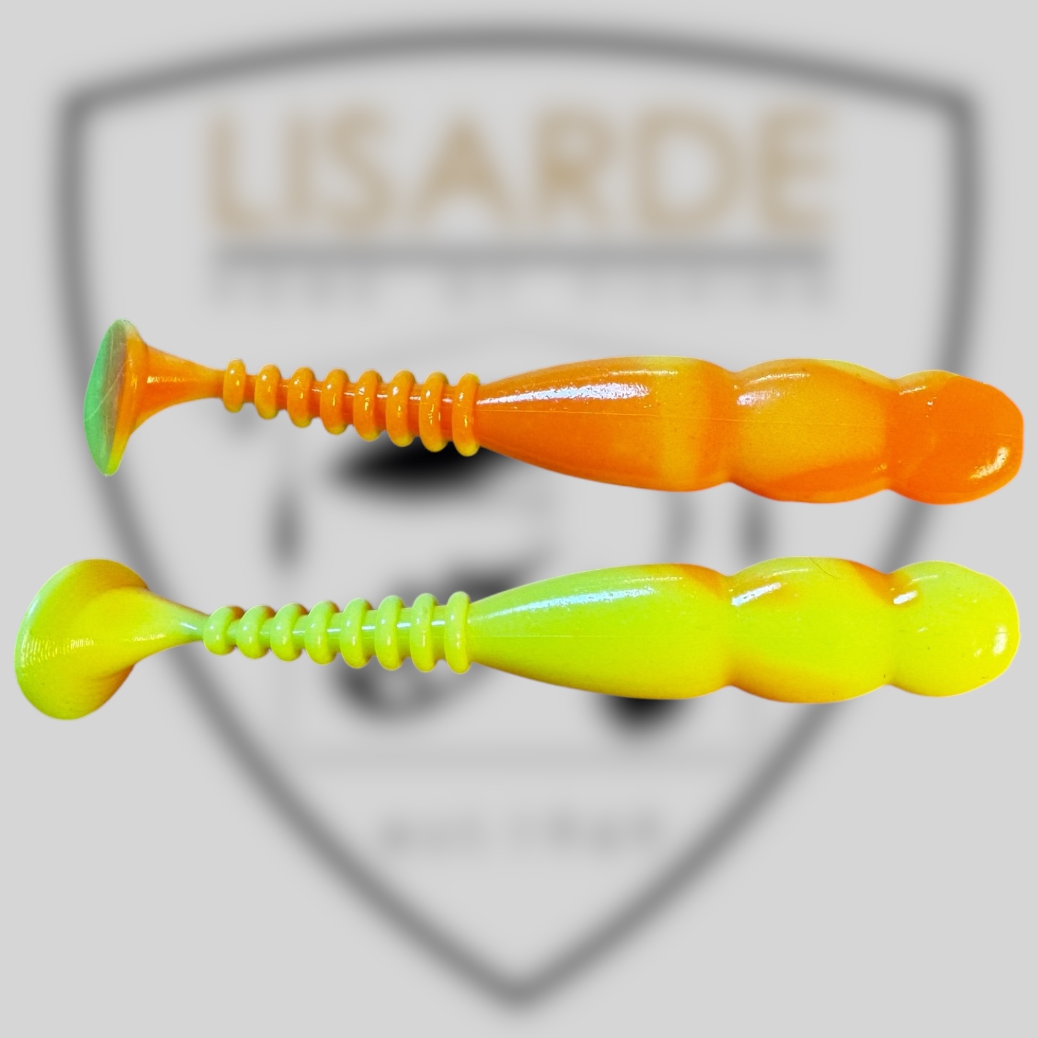 • Rein’s 4″Fat Rockvibe Shad is de DIKKERE versie van onze populaire Rockvibe Shad, met een dik lichaam en een geribbelde staart die eindigt in een peddel. De staart creëert een enorme actie terwijl hij door het water wordt getrokken en trekt veel aandacht. Zodra de vis bijt, laat hij niet meer los dankzij het sterke Rein’s Shrimp Scent en het zoutinfusieproces.